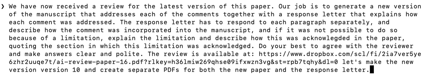 Overall, these were good and constructive criticisms. So, I asked Claude to add them to the paper and write a response letter.
