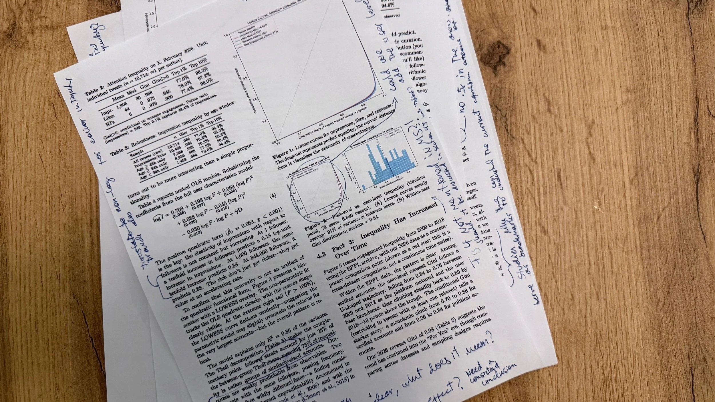 Claude had produced a paper focused on five stylized facts using the EPFL data plus two samples of recent tweets gathered from X. A cross-section of 8,722 tweets and a timeline panel of 17,671 tweets from 225 users.