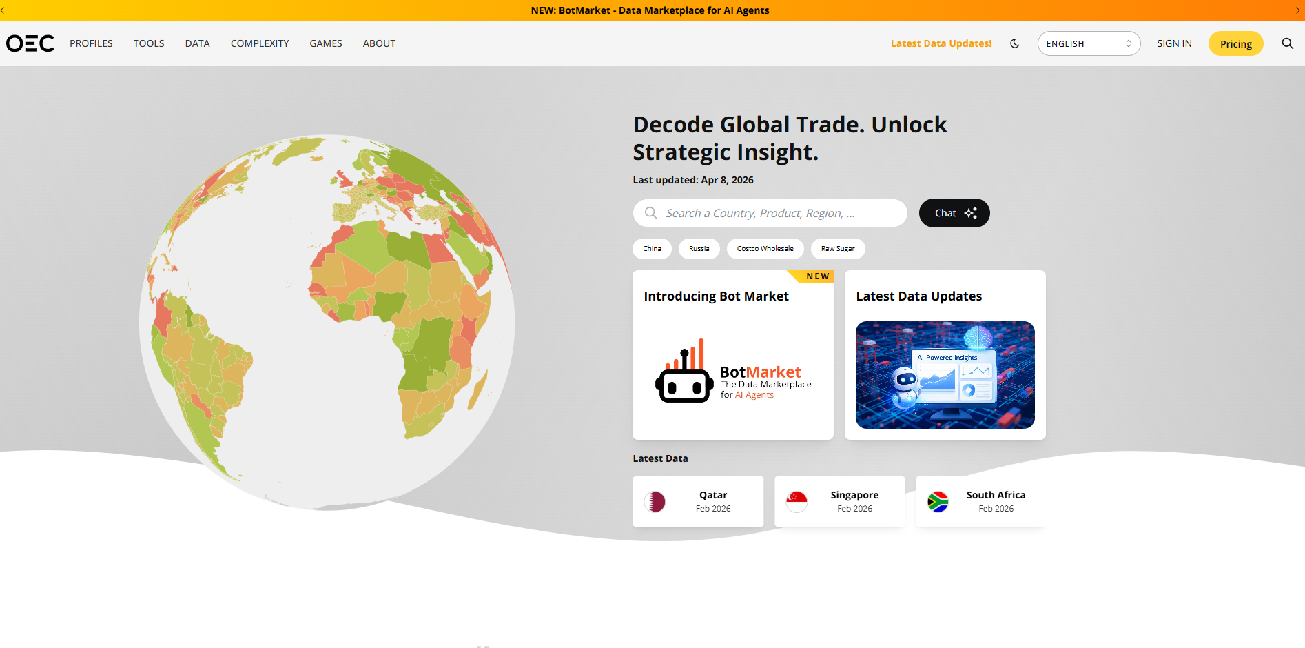 The Observatory of Economic Complexity (OEC) makes international trade data available through millions of interactive visualizations. It is the worldβs most popular site to visualize international trade data.