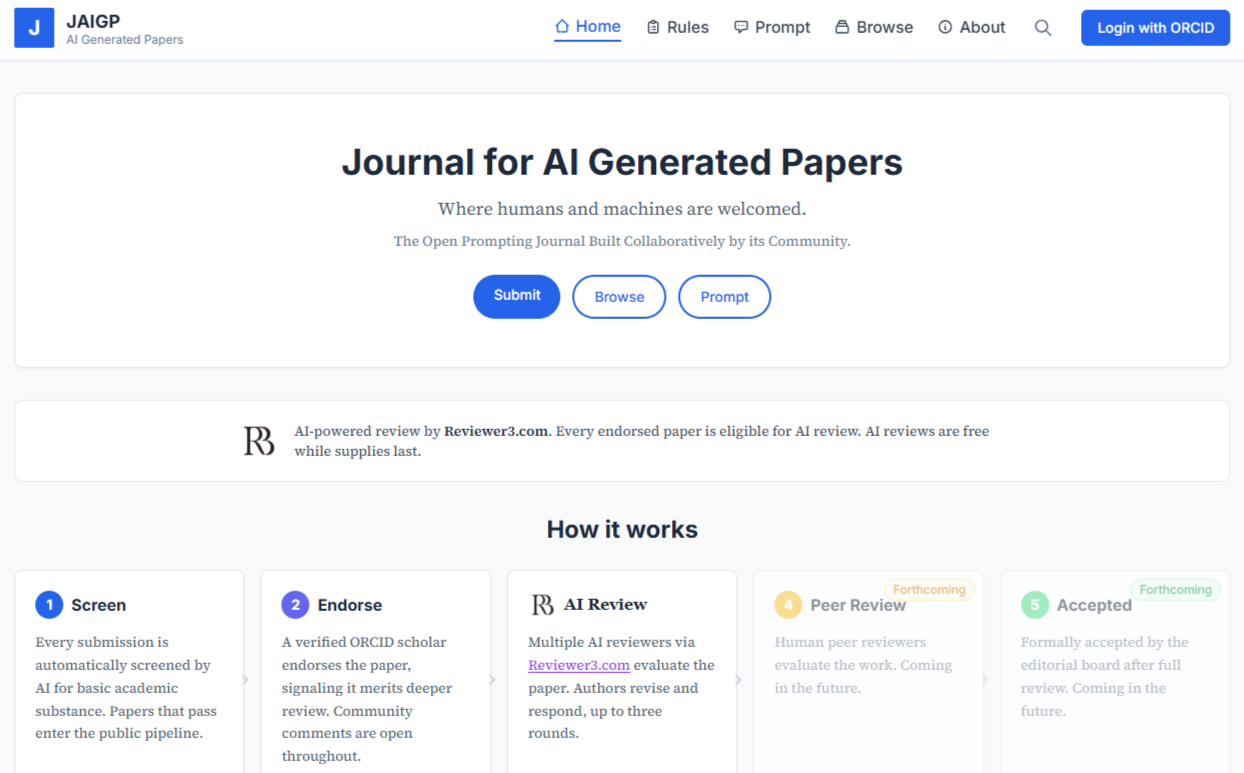 The Journal of AI Generated Papers (JAIGP) is an open experiment in building the infrastructure that AI-generated science requires.